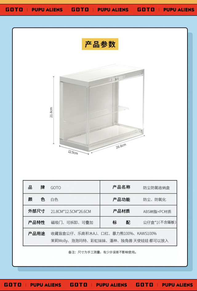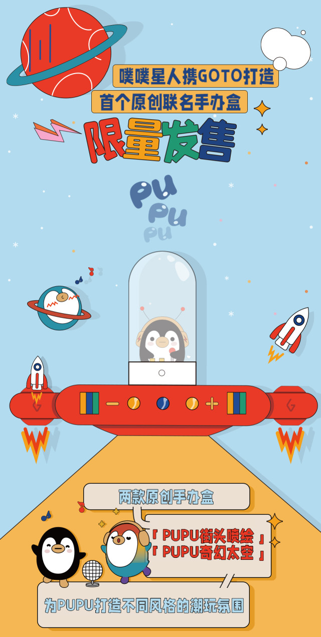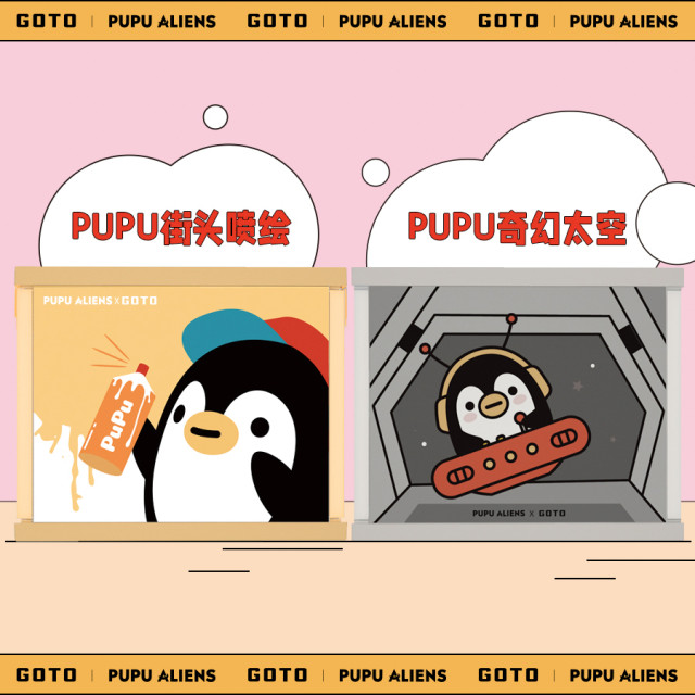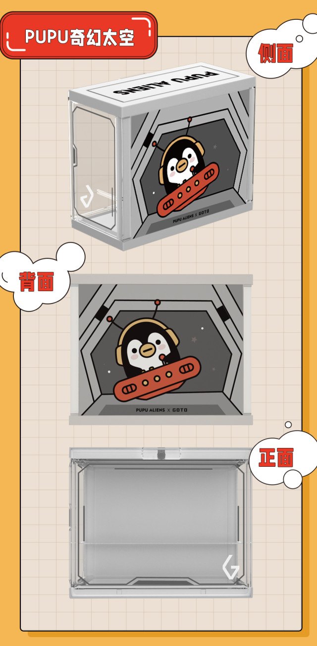 PUPU ALIENS x GOTO 联名原创限量手办展示盒噗噗星人创意泡泡模特盲收纳盒